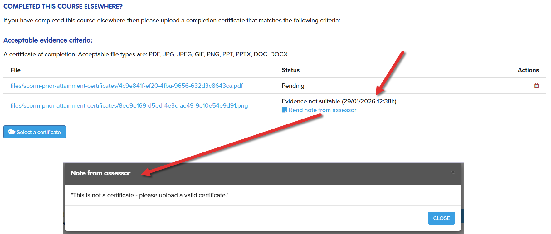 - It is recommended to add a note for the student to explain why this is not acceptable andgive them guidance on what is required / acceptable